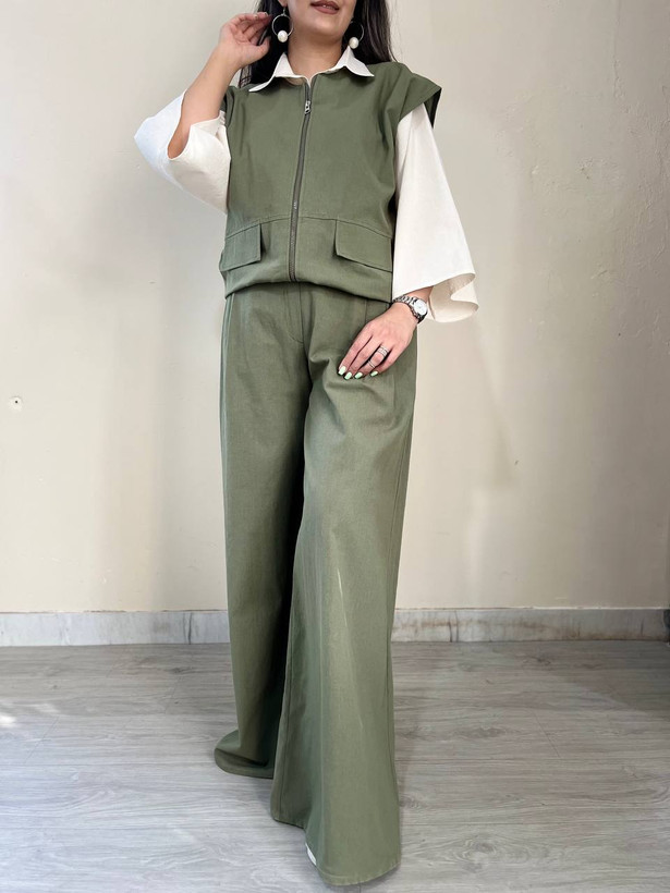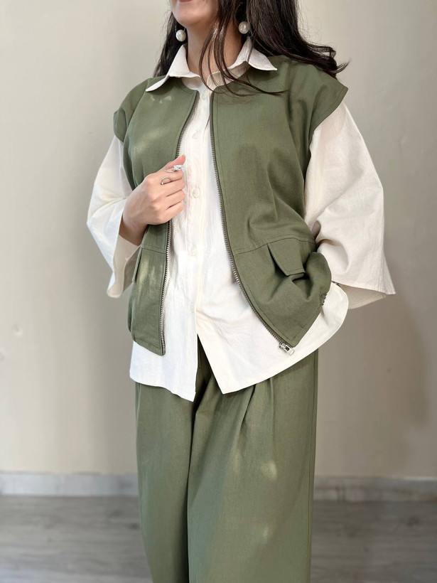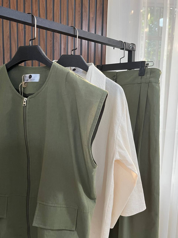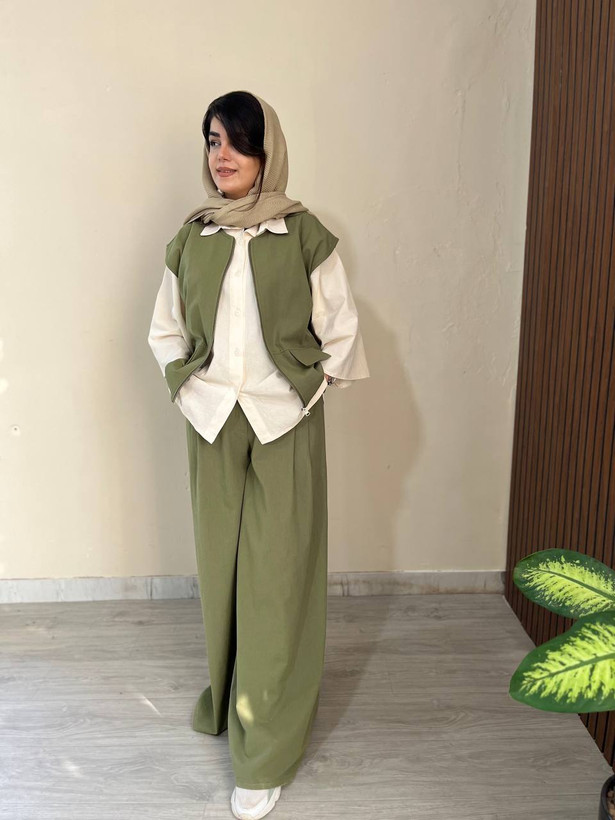 کالکشن تابستونی مانتو زنانه مدل وست و شلوار جنس لینن ایتالیایی فری سایز