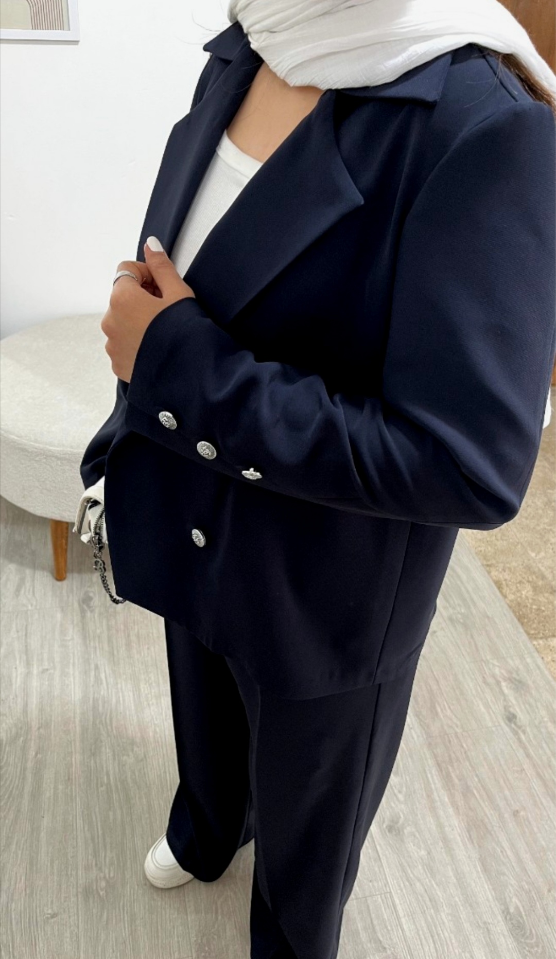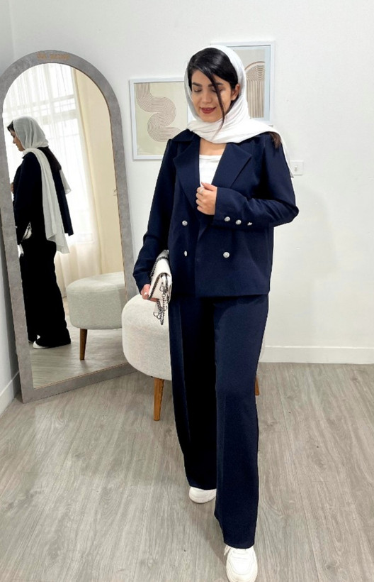 سایز کت: فری سایز تا 44از قسمت پشت کت یه چاک مدل کج داره